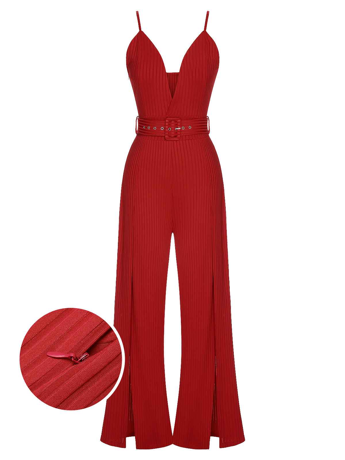 1930s Deep V-Neck Spaghetti Strap Wide-Leg Jumpsuit