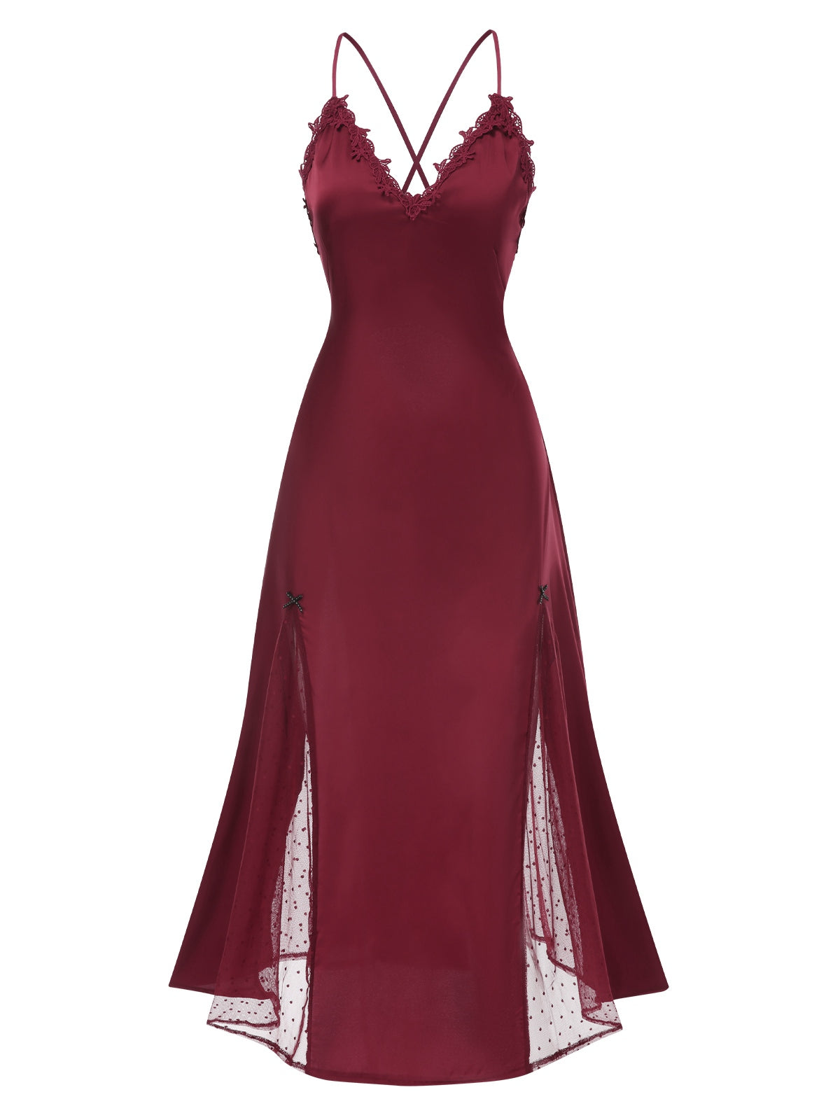 1930s Deep V-Neck Lace Mesh Nightgown