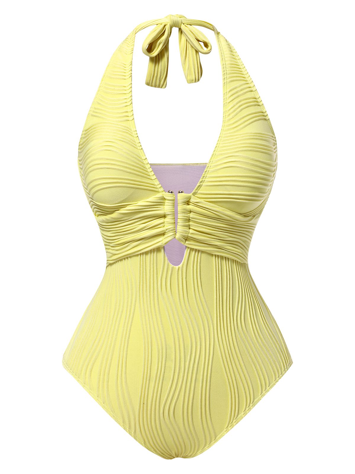 1950s Halter Hollow U-Ring Textured Swimsuit