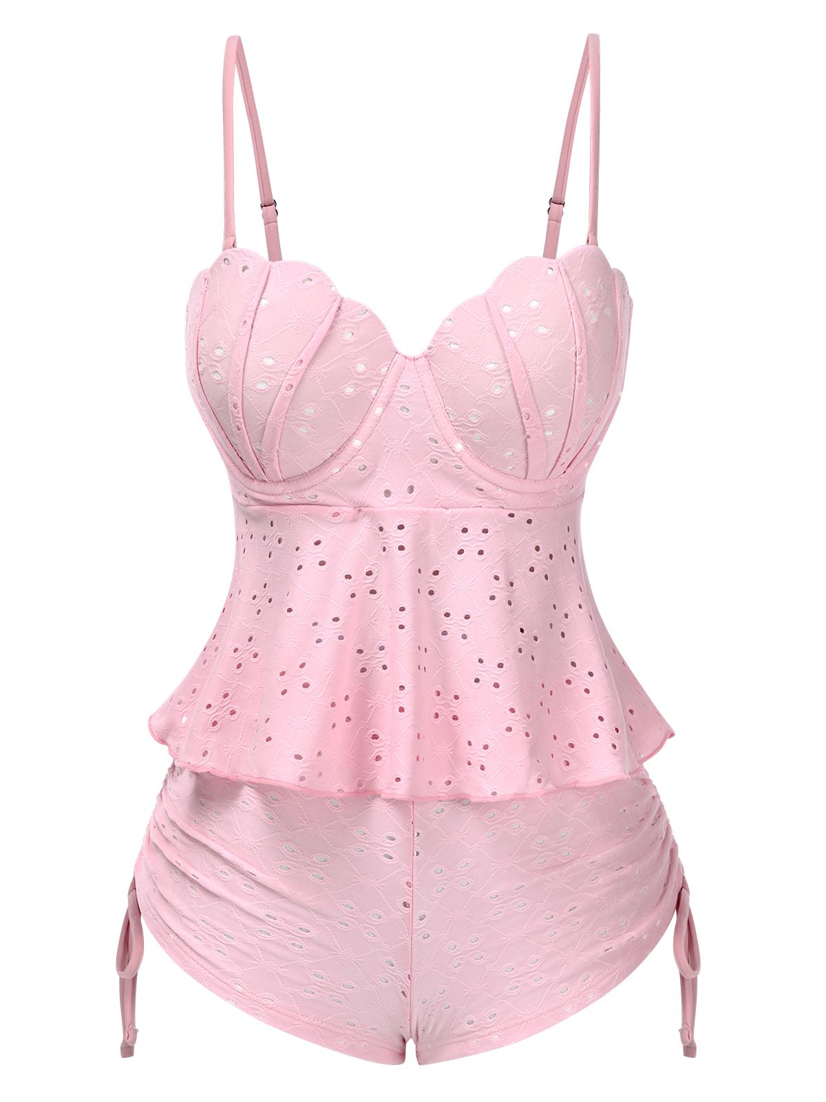 1940s Spaghetti Strap Eyelet Shell Tankini Set