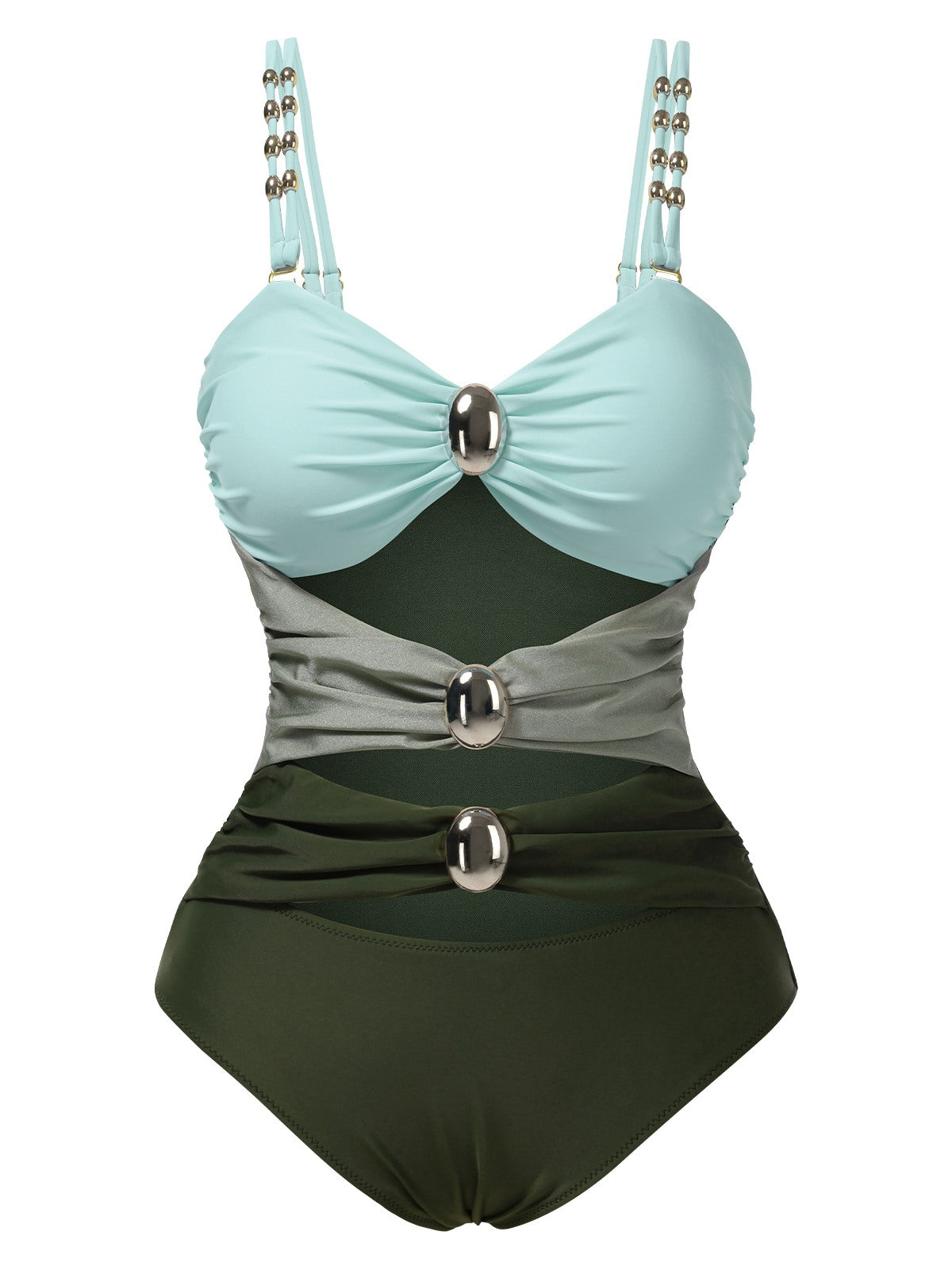 1950s Metal Button Hollow One-Piece Swimsuit