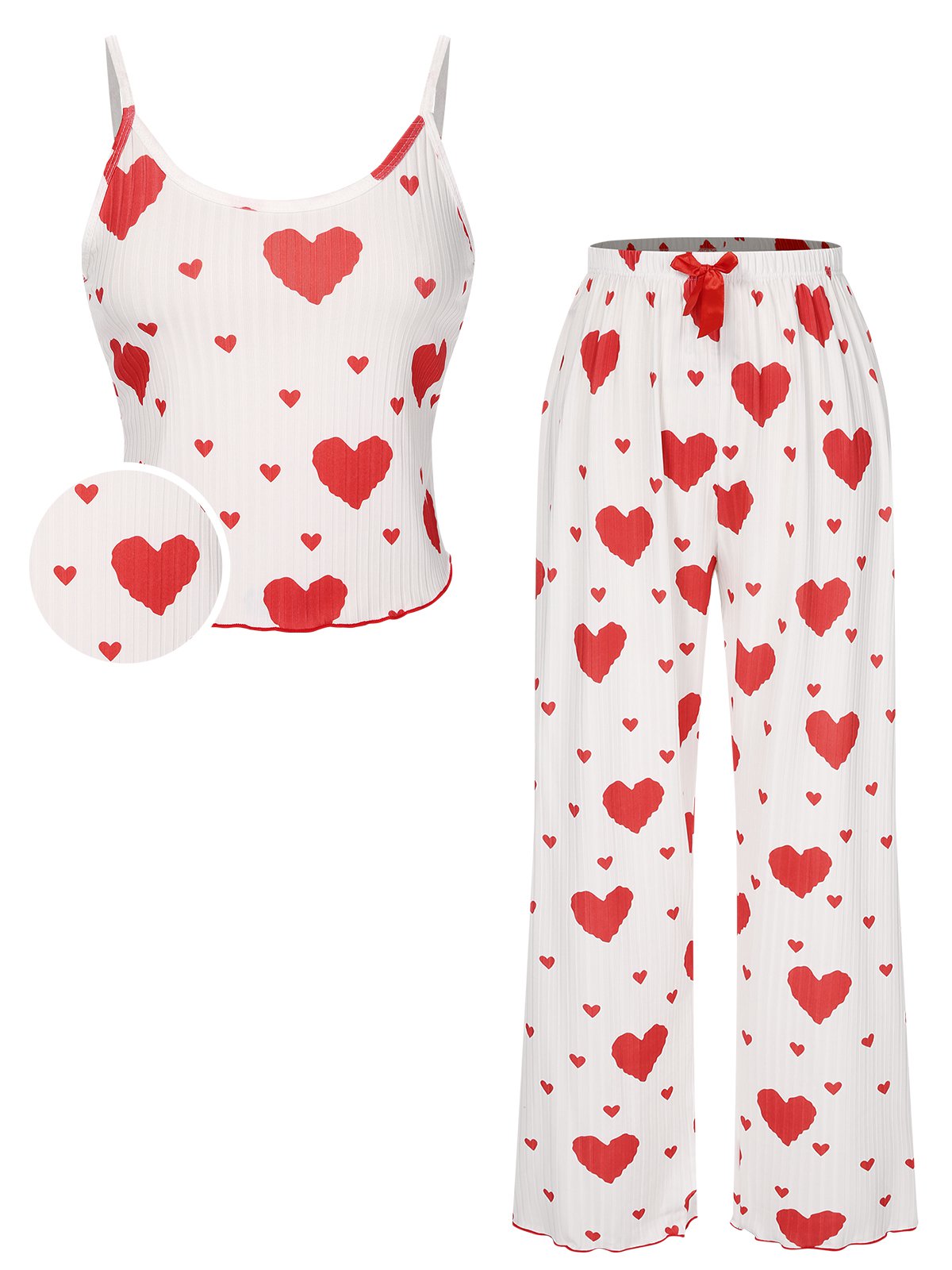 1970s Hearts Knit Spaghetti Strap Pajamas