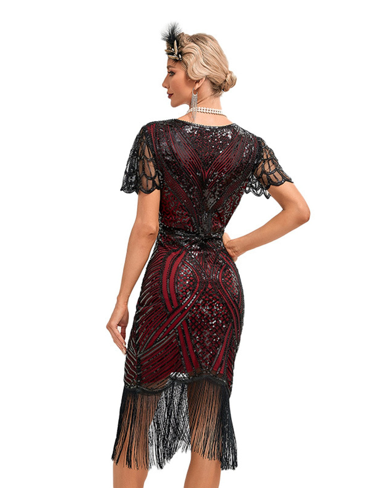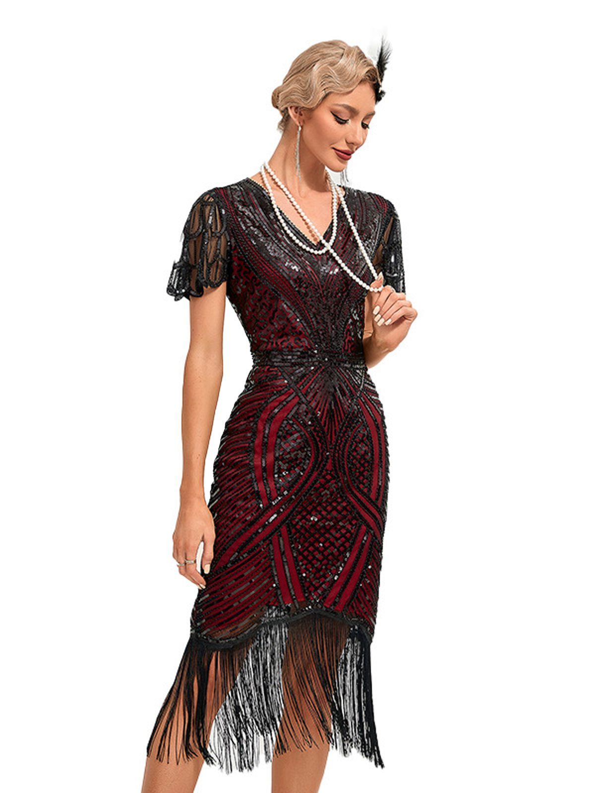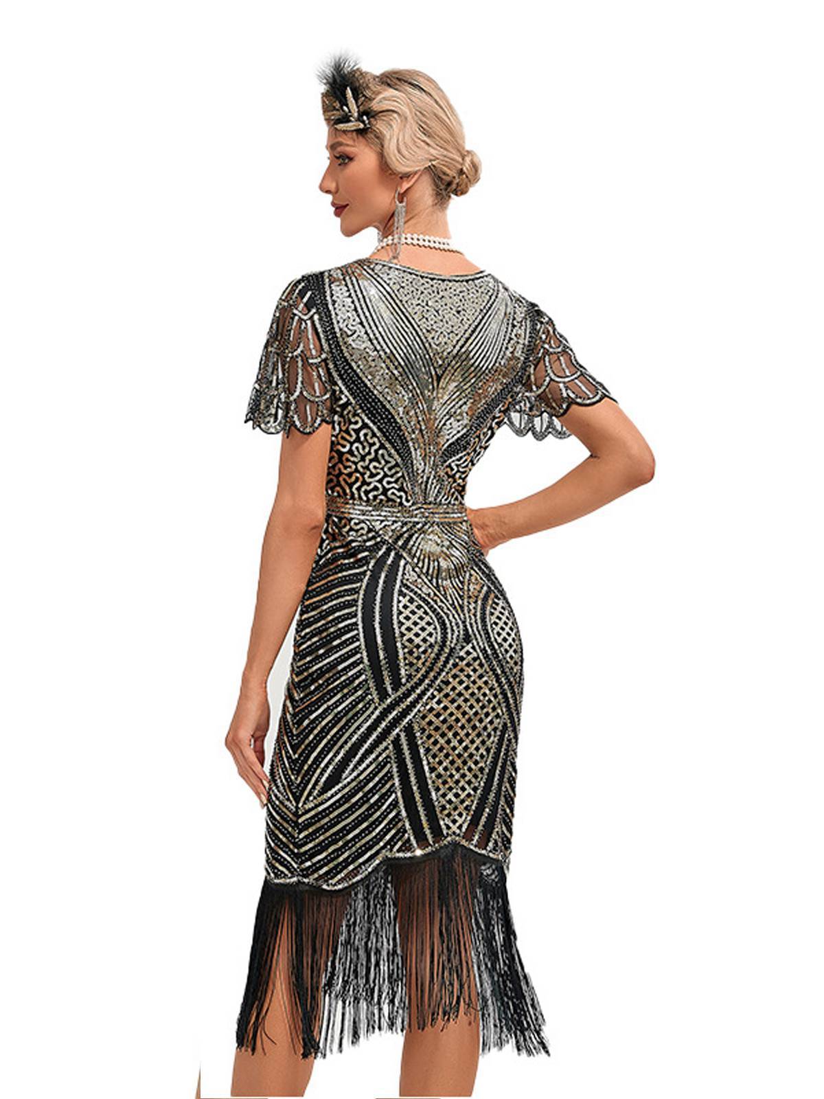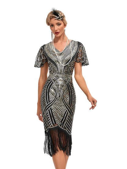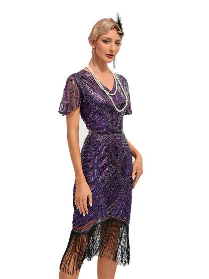 1920s Cap Sleeves Tassel Sequined Dress