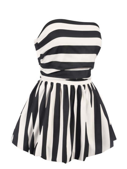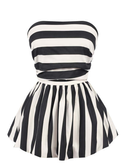 1930s Contrast Stripe Bandeau Pleated Puff Top