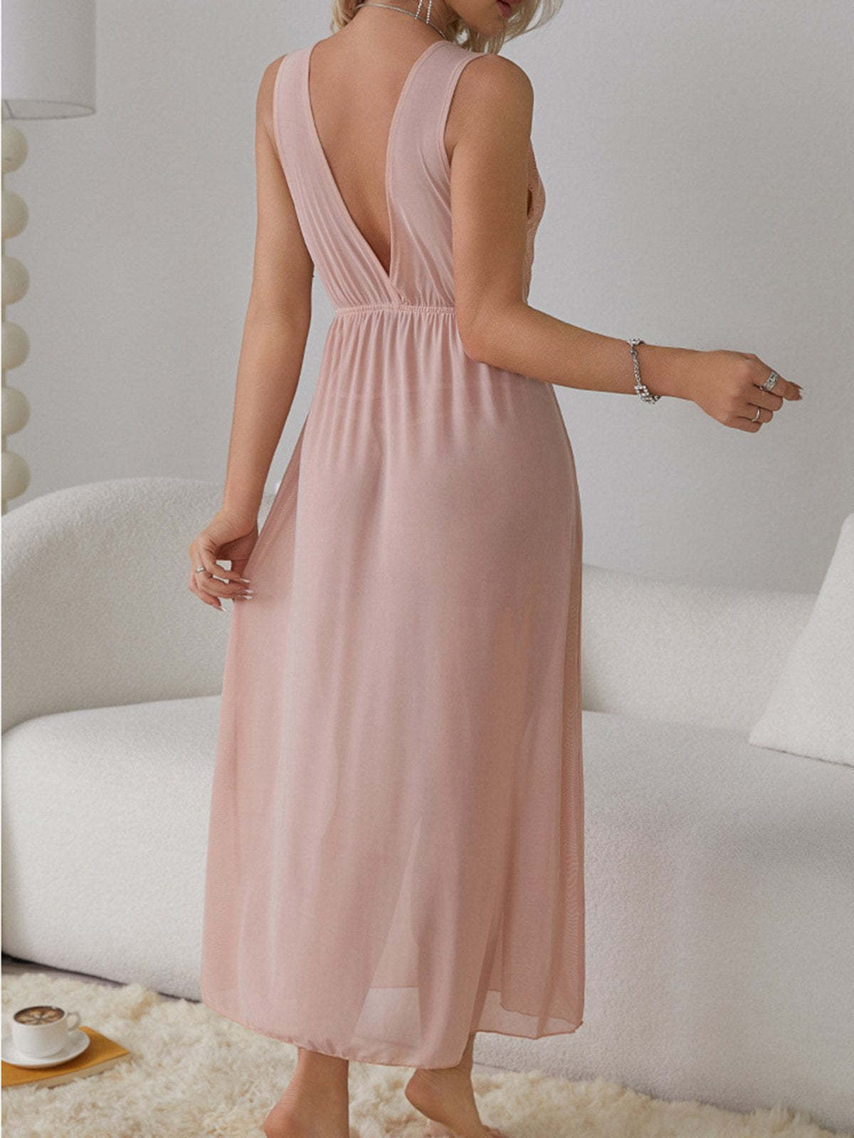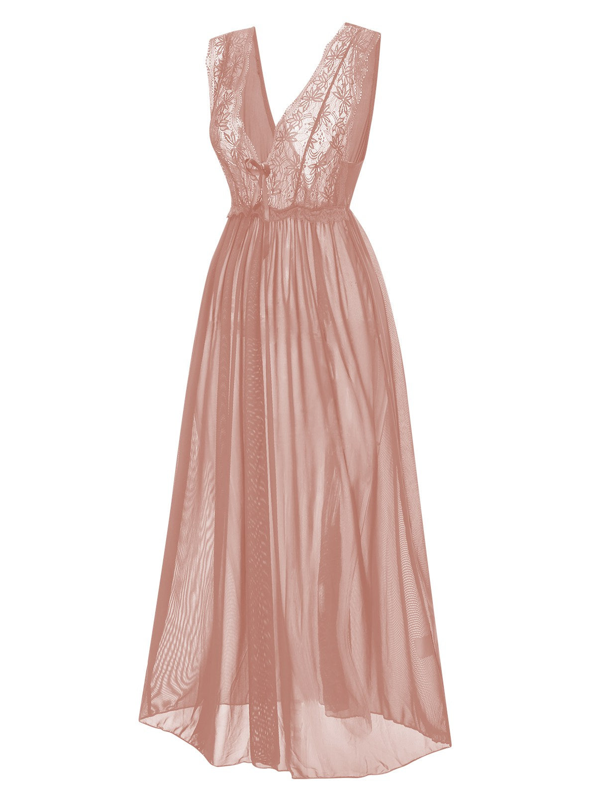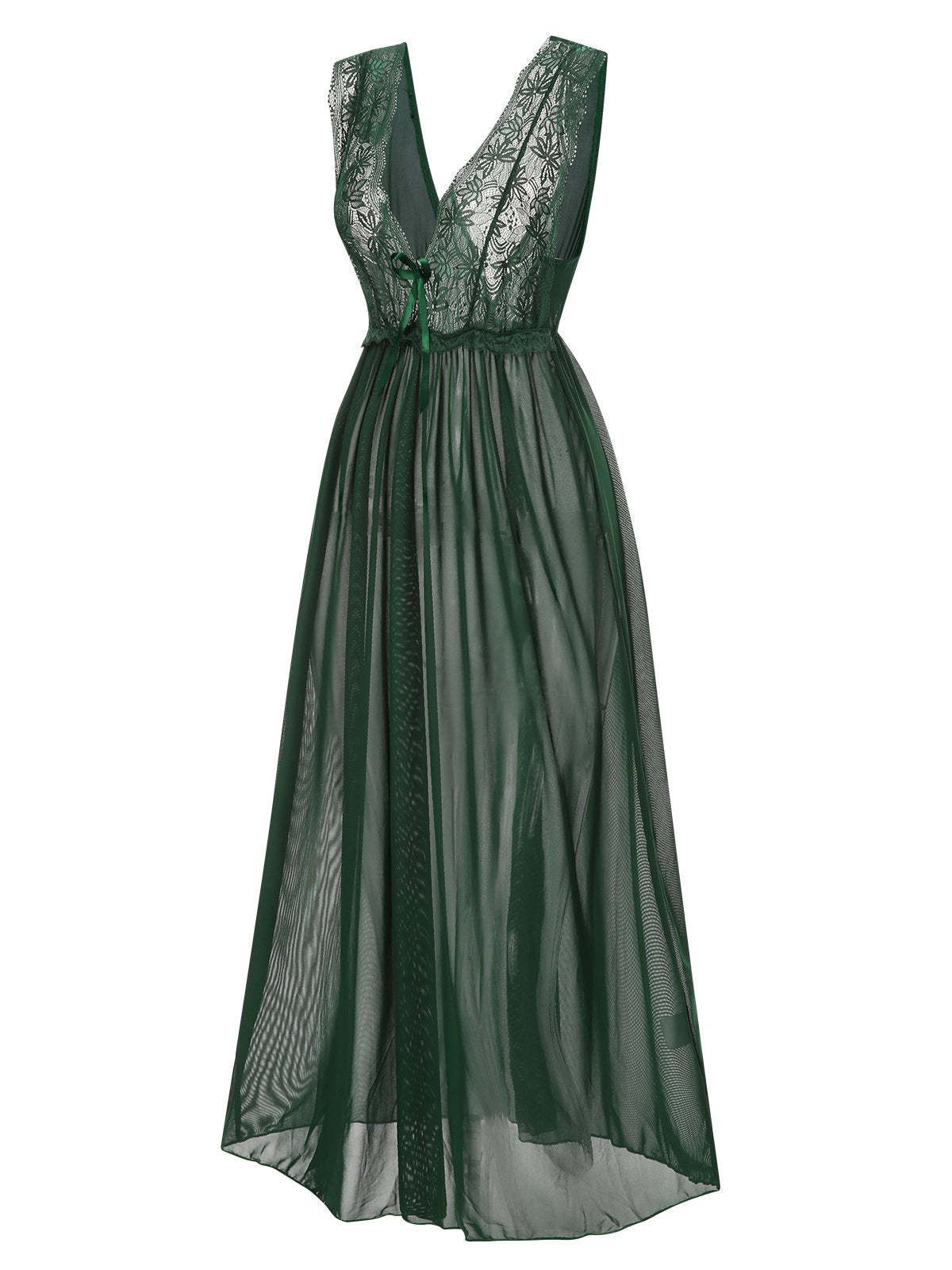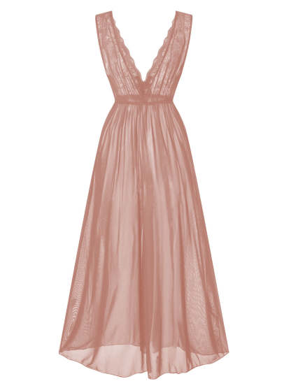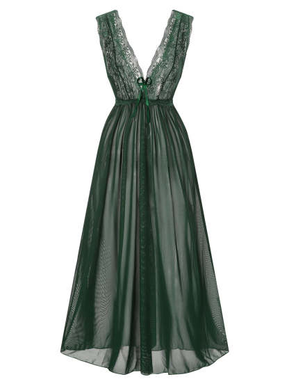 1930s Deep V-Neck Lace Mesh Nightgown