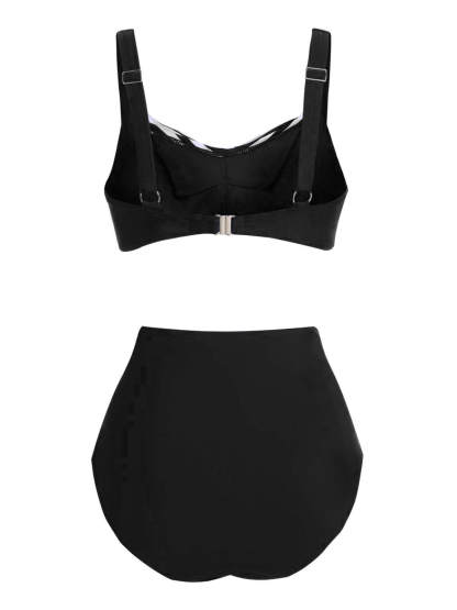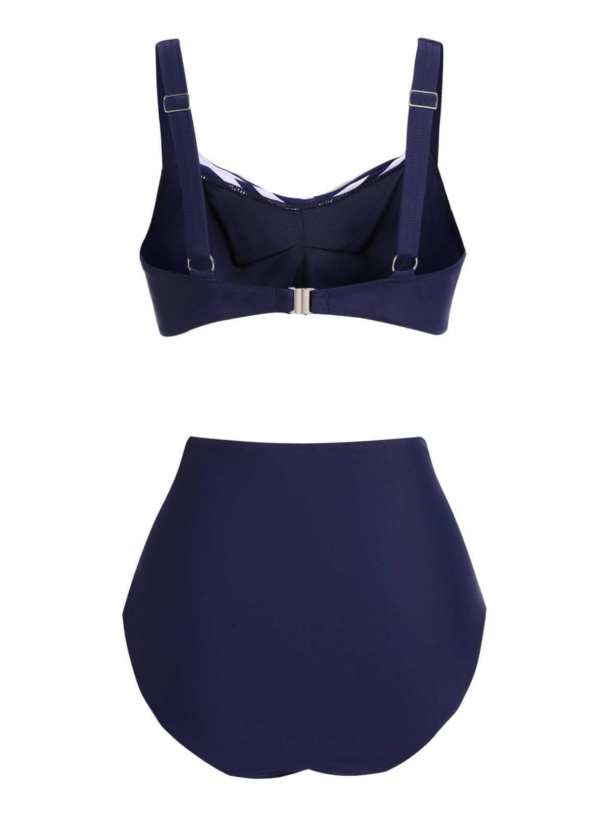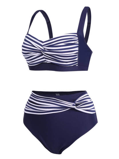 [Plus Size] 1950s Stripe Twisted Patchwork Strap Swimsuit