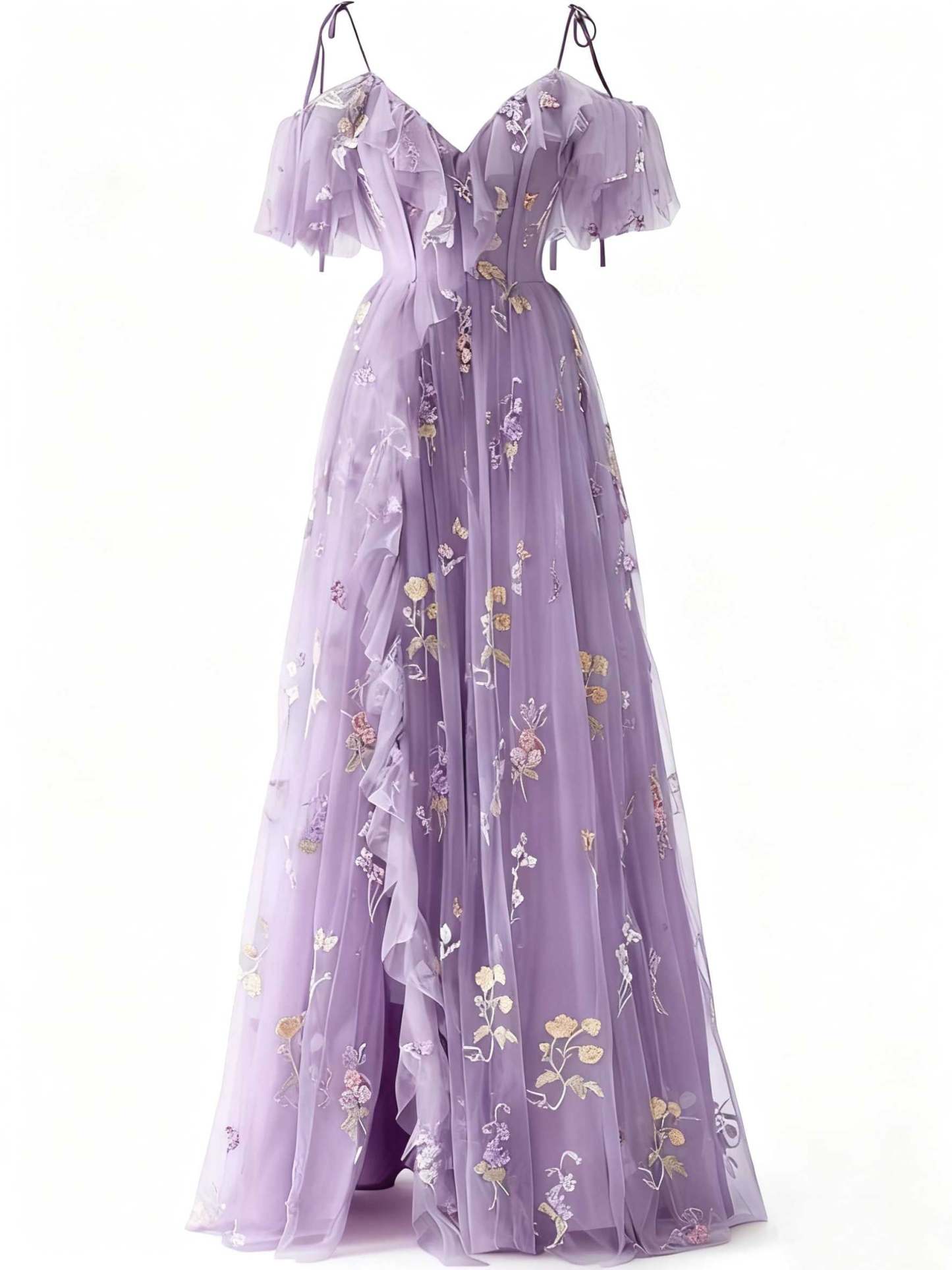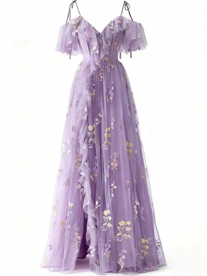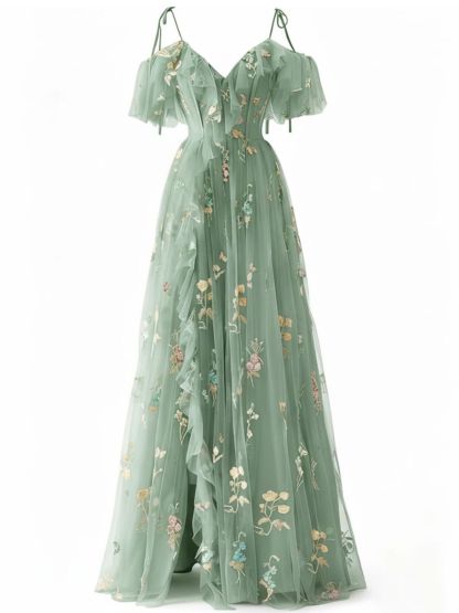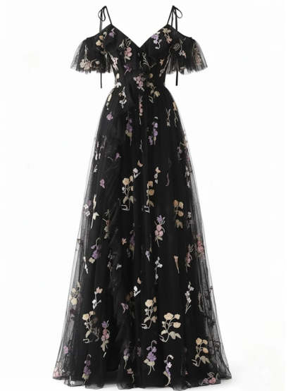 1970s Slip Floral Embroidered Mesh Slit Dress