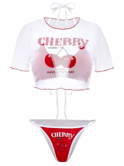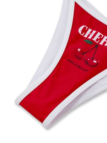 3PCS Red 1950s Cherry Print Tie-Up Bikini Set