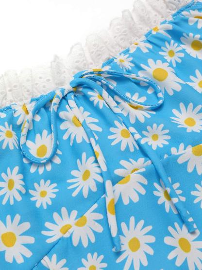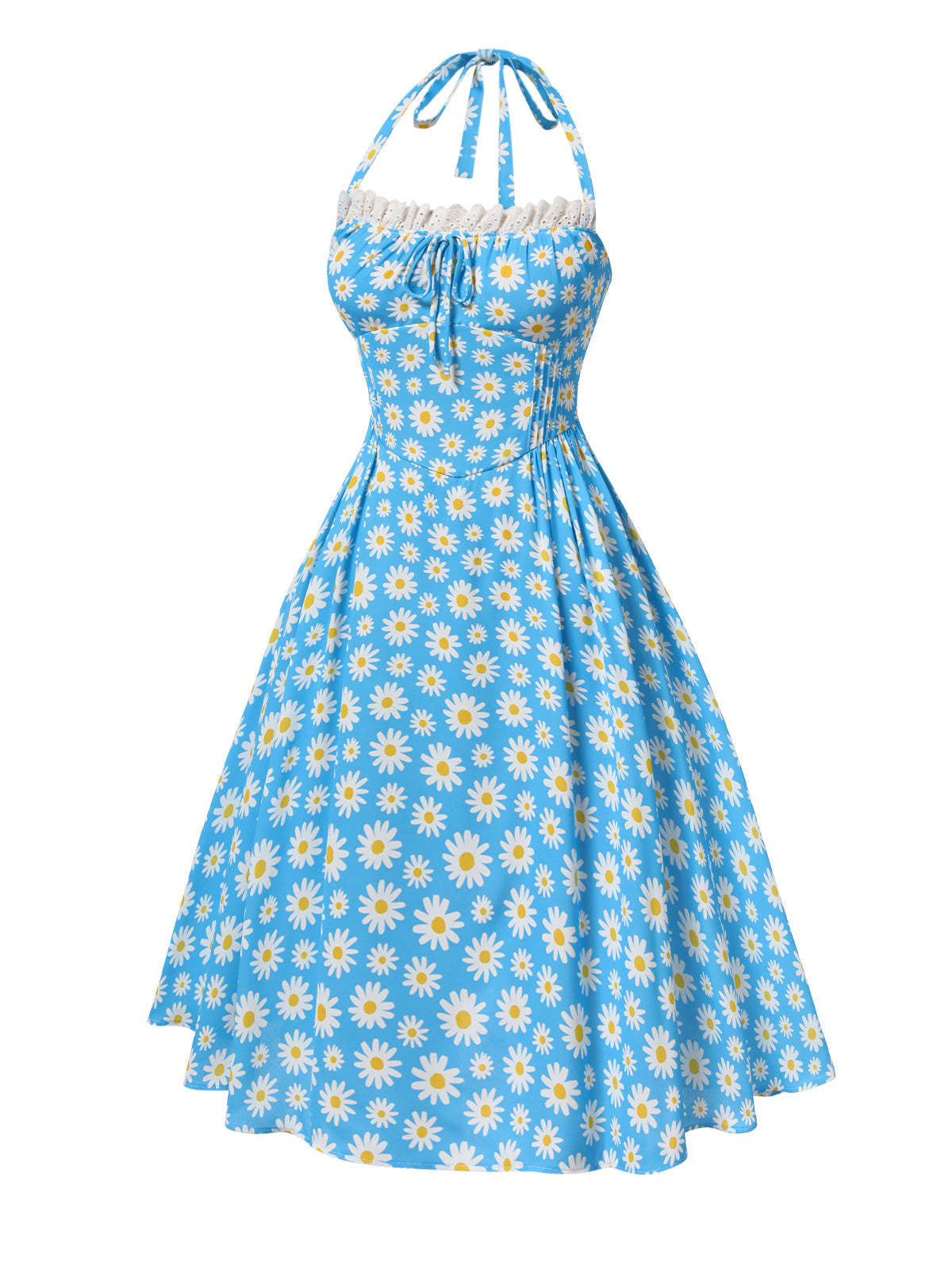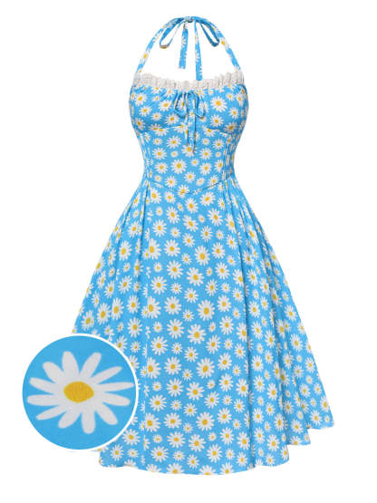 [Pre-Sale] Blue 1950s Halter Lace Daisy Dress