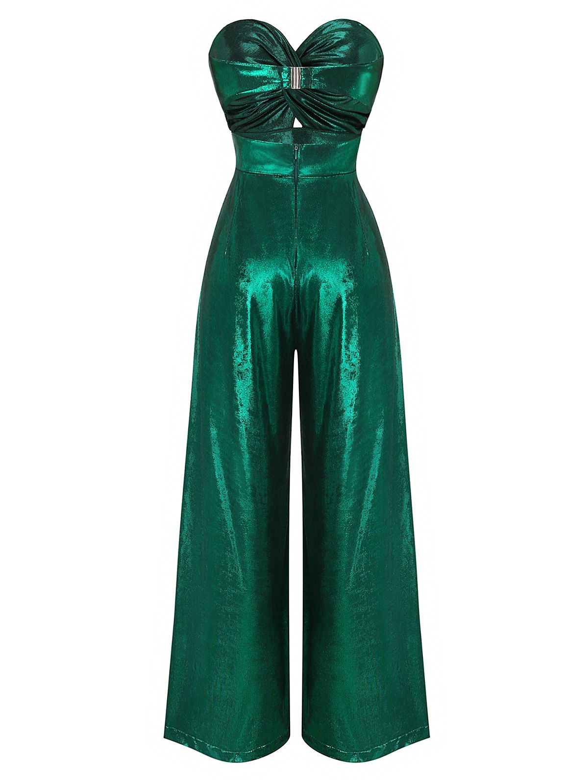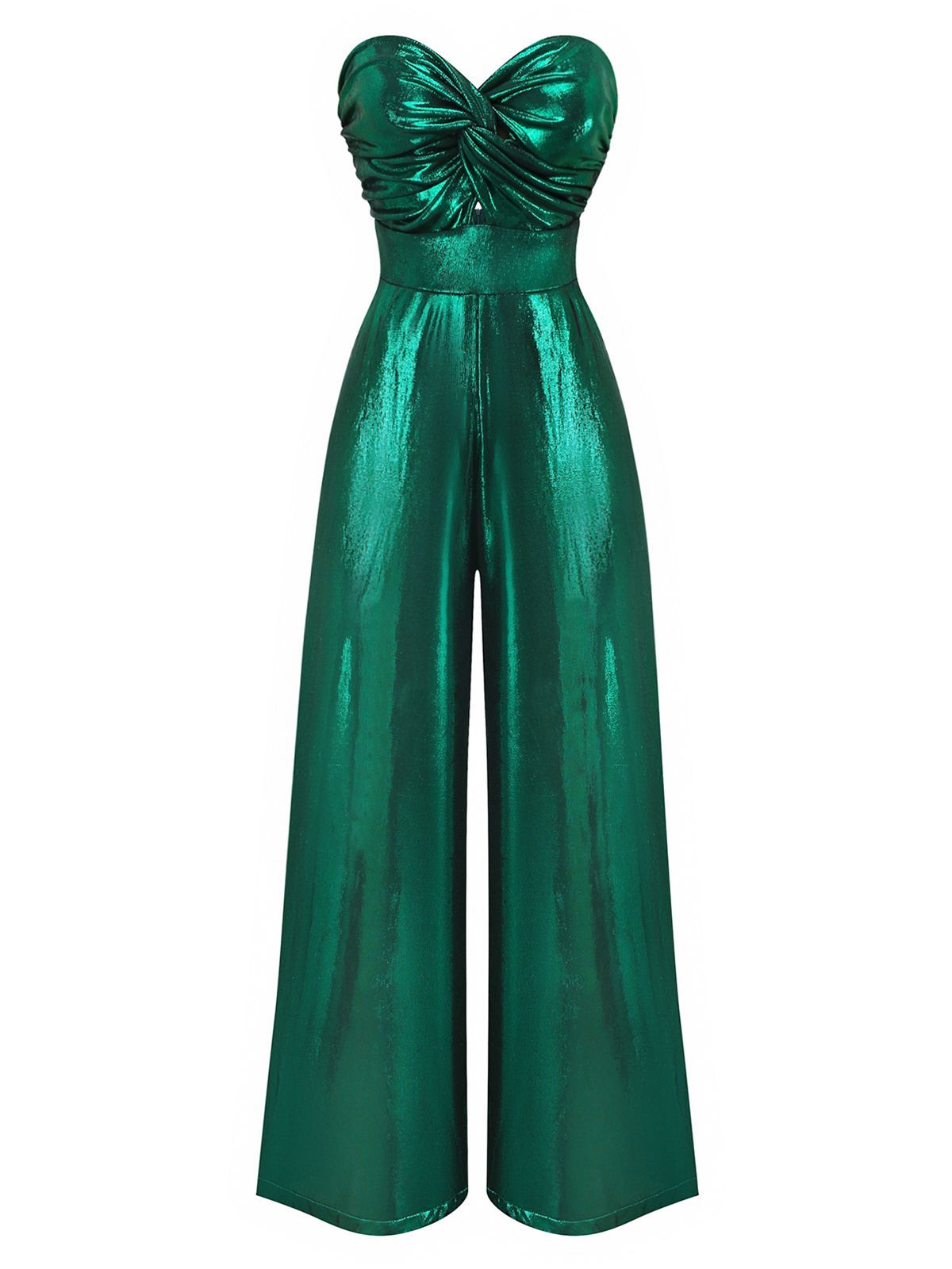 Disco lights bounce off this Retro Stage 1970s jumpsuit, perfect for vintage lovers who crave full-on glam. Shiny emerald fabric wraps into a ruched strapless bodice and nipped-in waist before flowing into dramatic wide legs. Slip into this 1970s disco jumpsuit with heels and you’ll shimmer like the star of the dance floor.