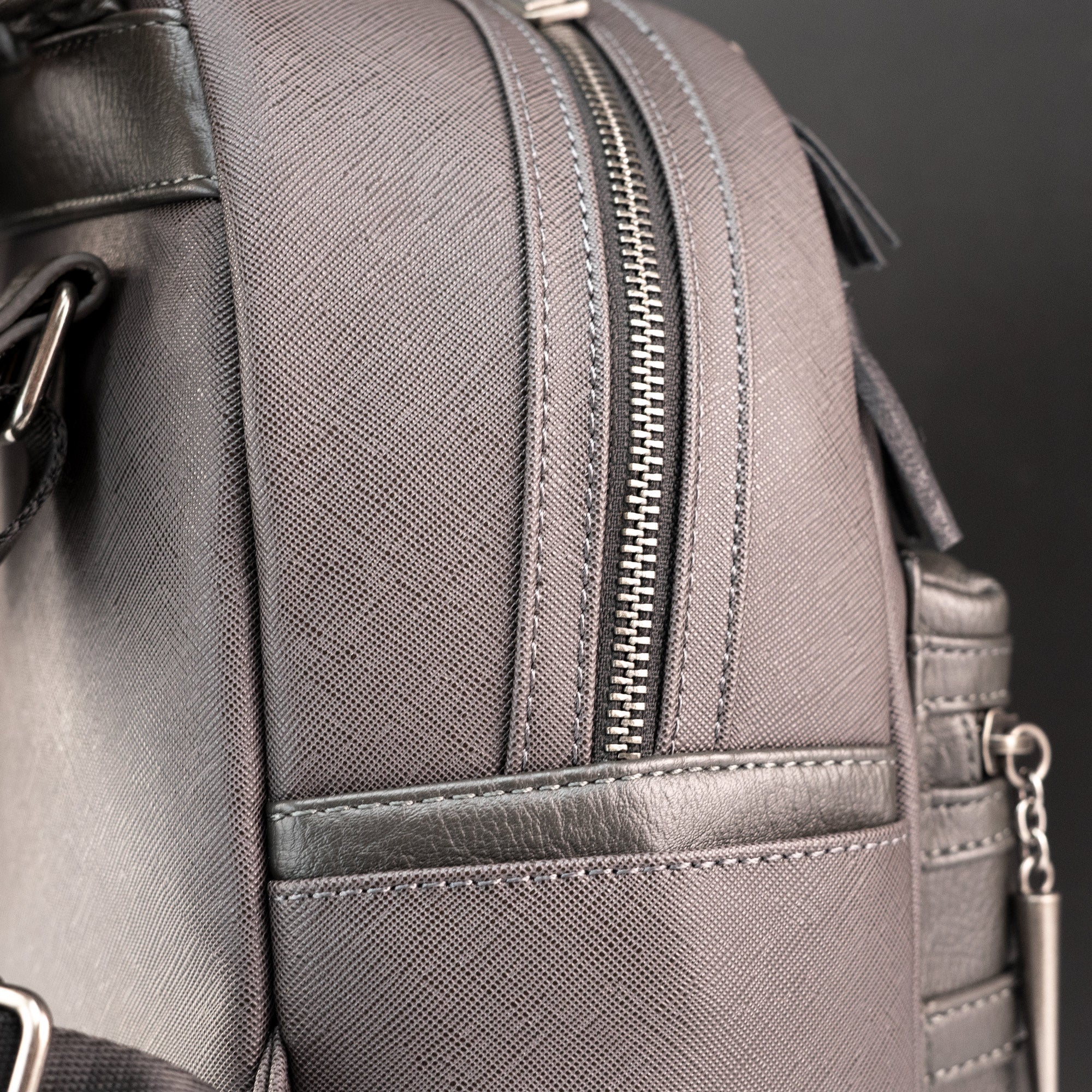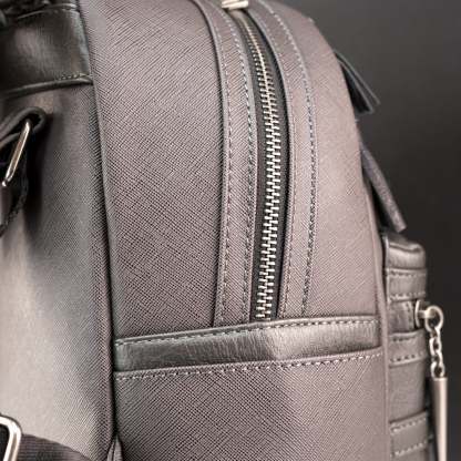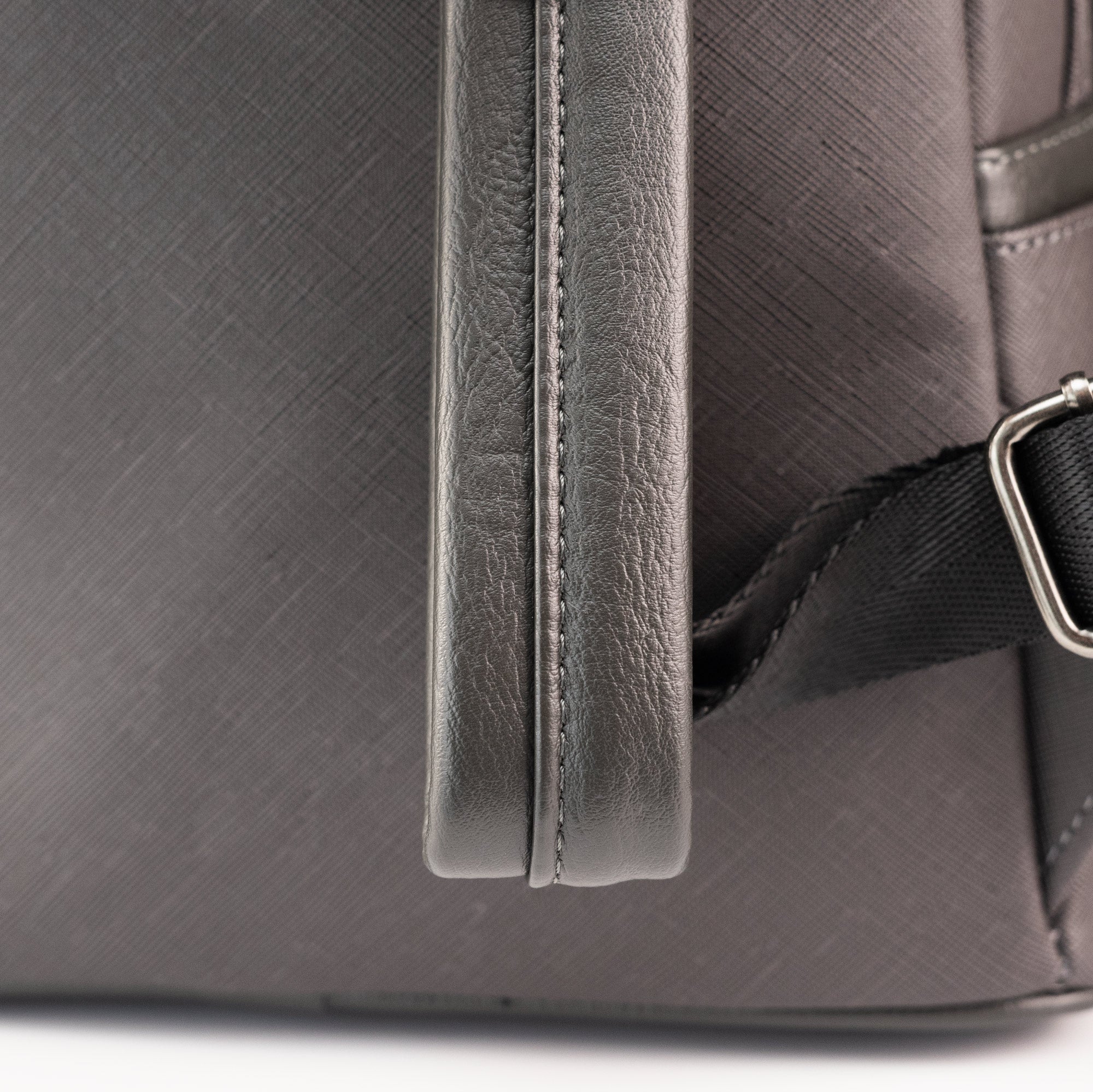 Made with vegan friendly saffiano faux leather