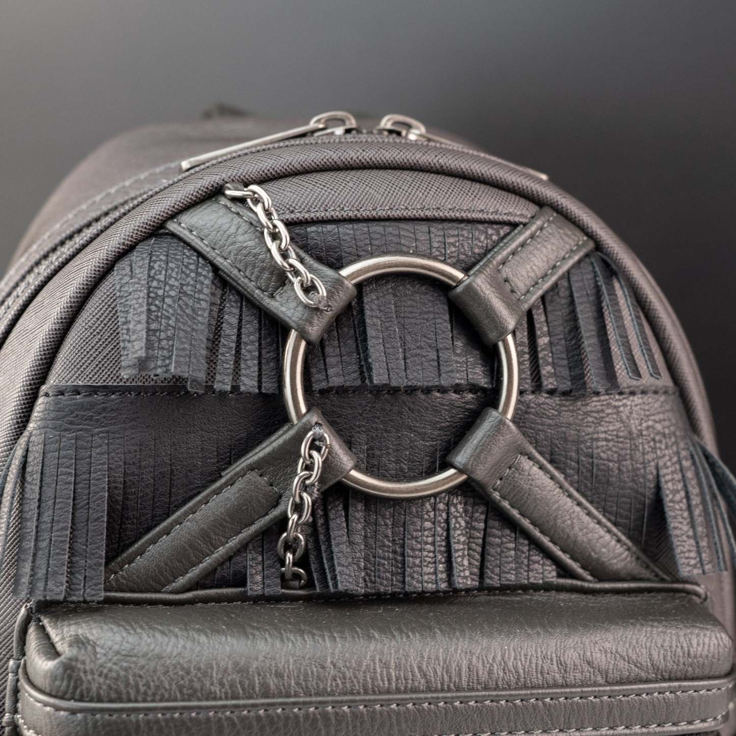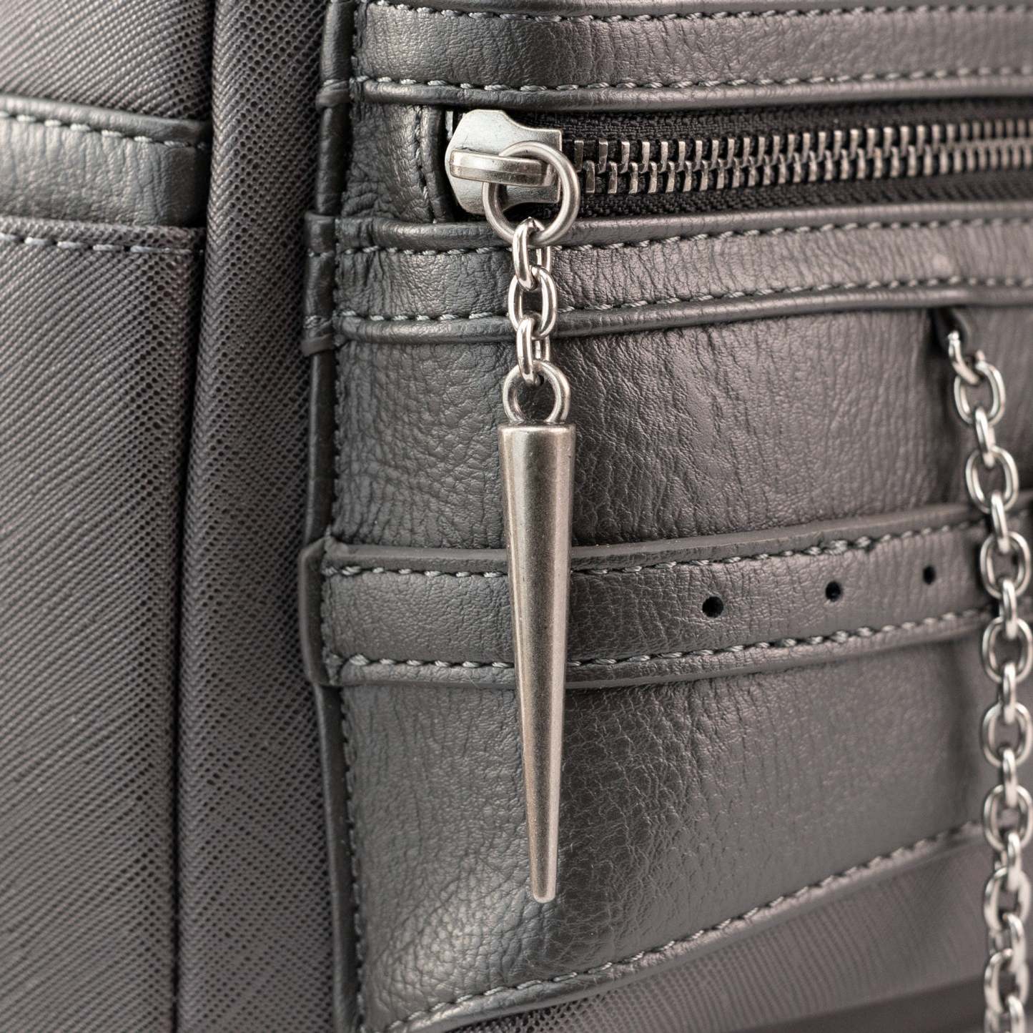 Features metal zipper charm