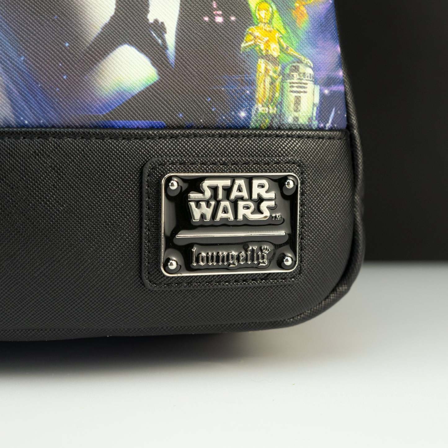 - Finished with signature Loungefly enamel badge
