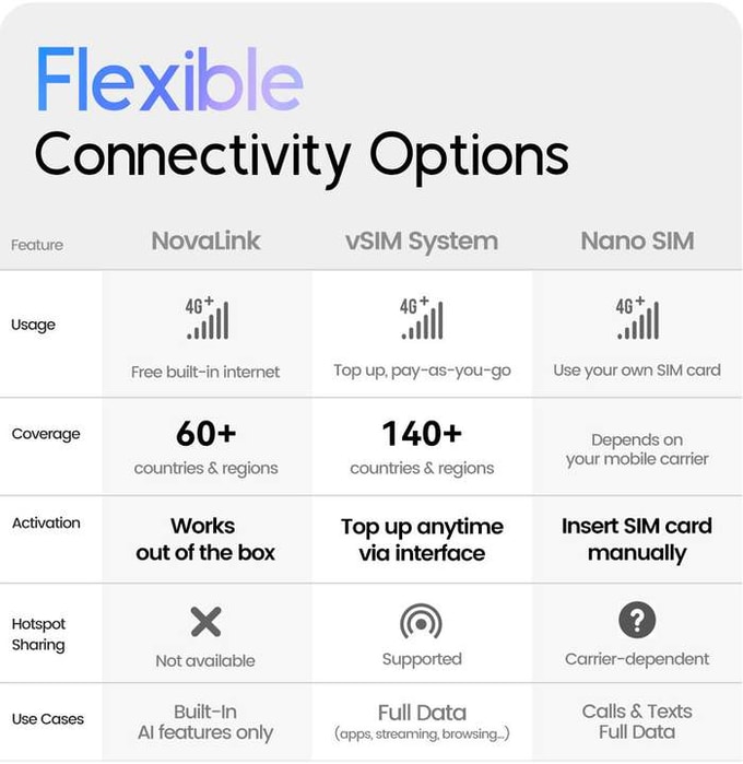 - Pro tip: Use your Nano SIM alongside NovaLink and vSIM for the best of all worlds — local reliability + global flexibility.