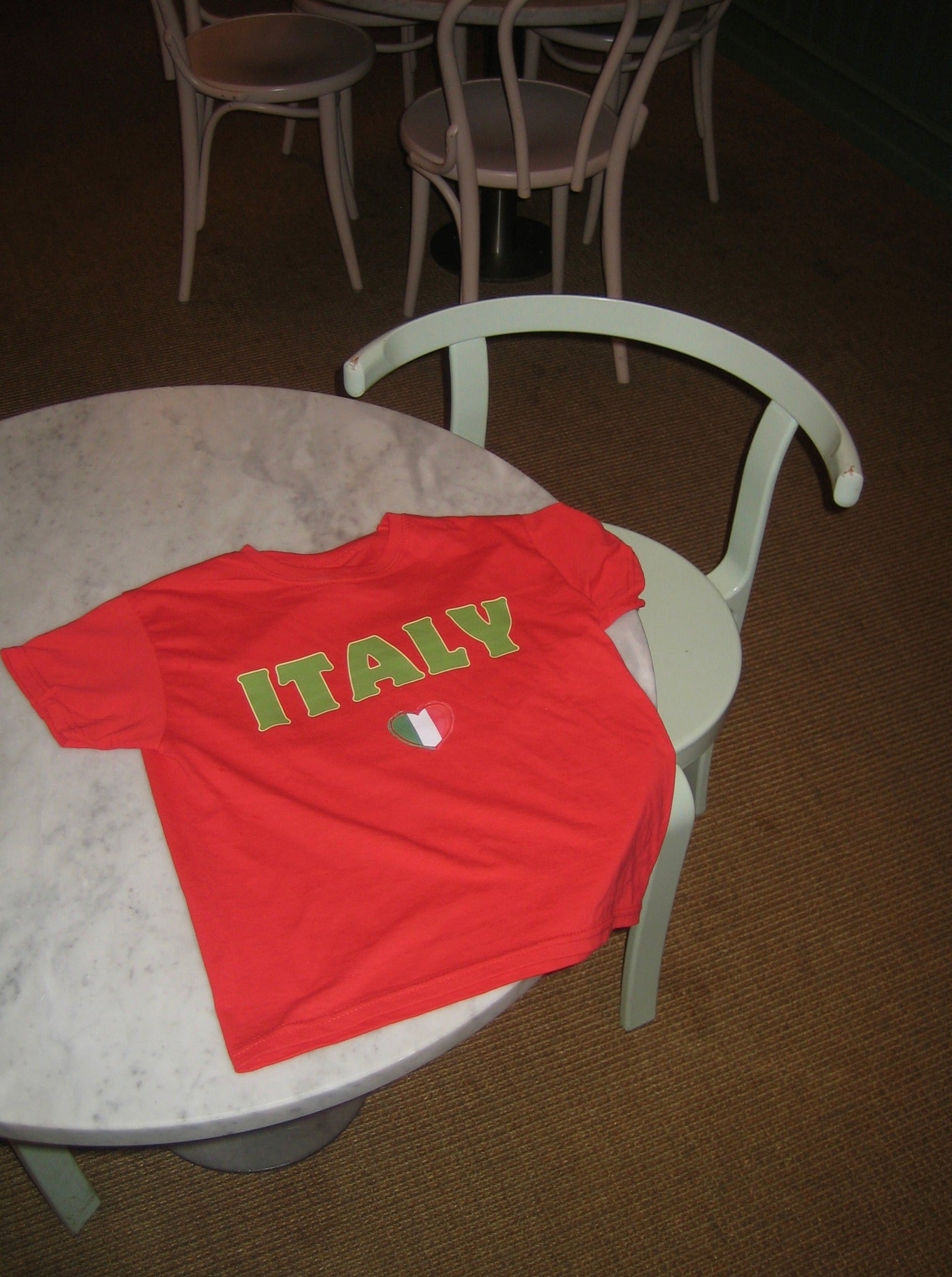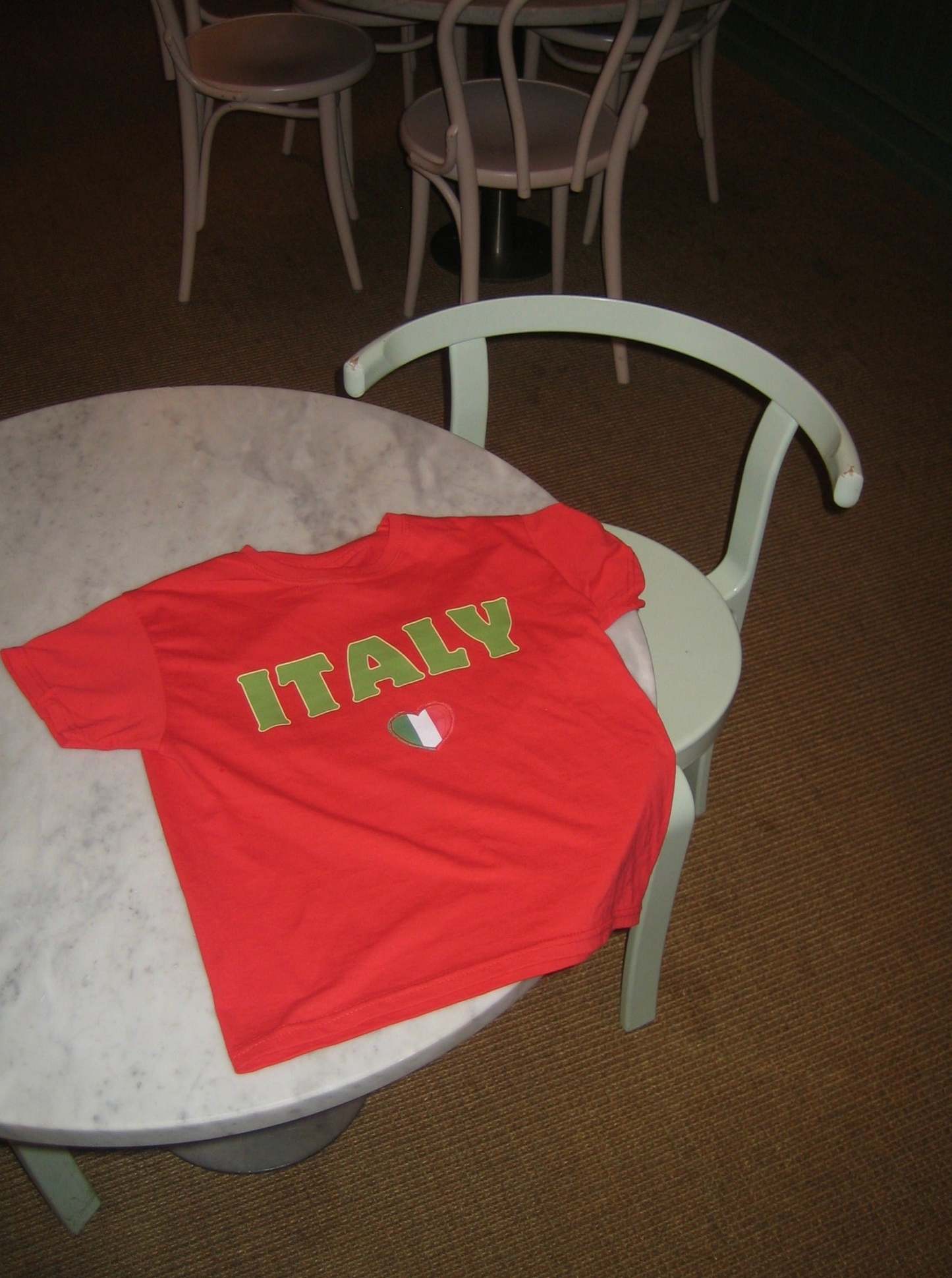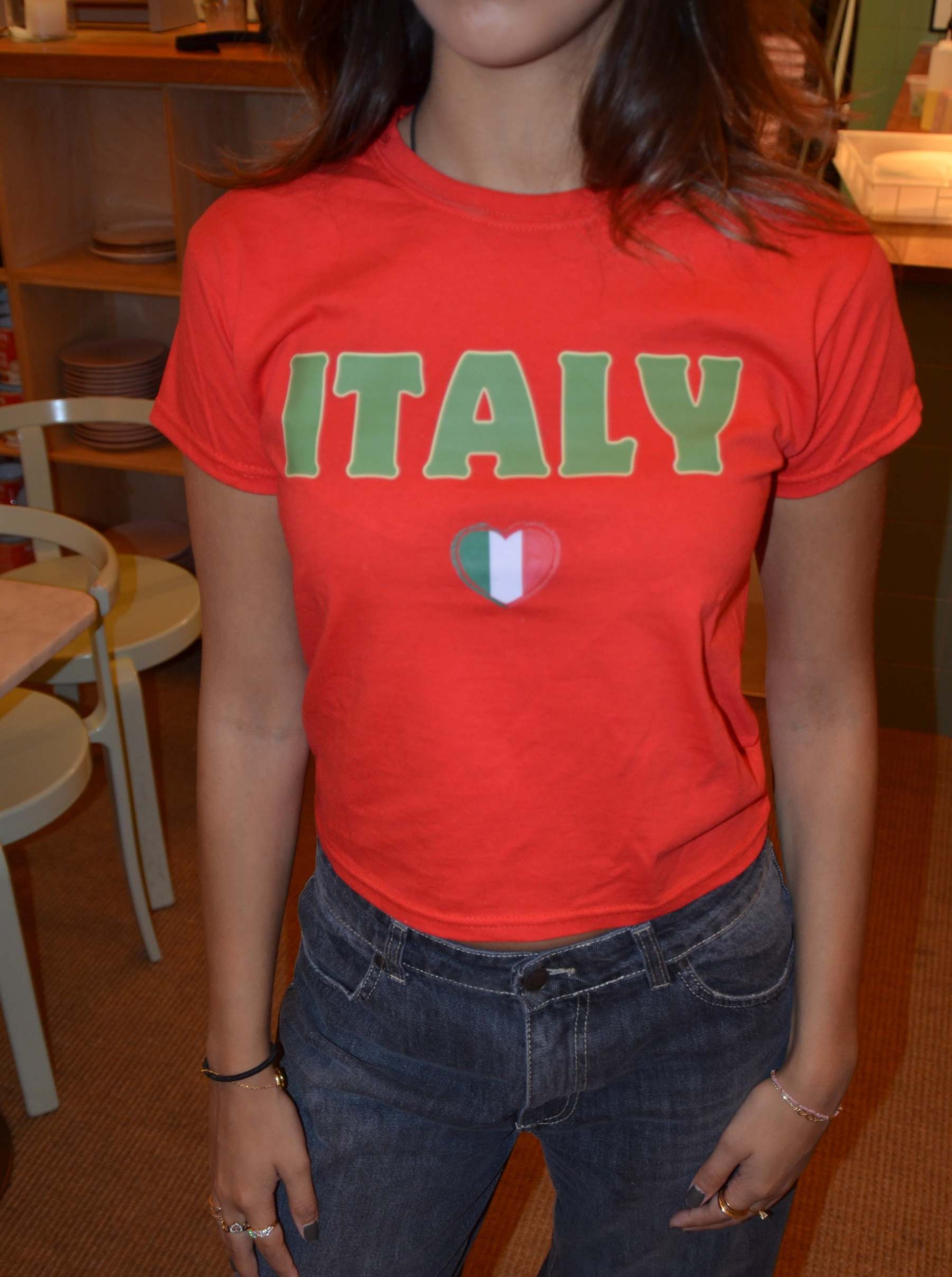 Baby tee with green "Italy" writing on it. Our tees are from fruit of the loom and in a super soft and comfortable quality.