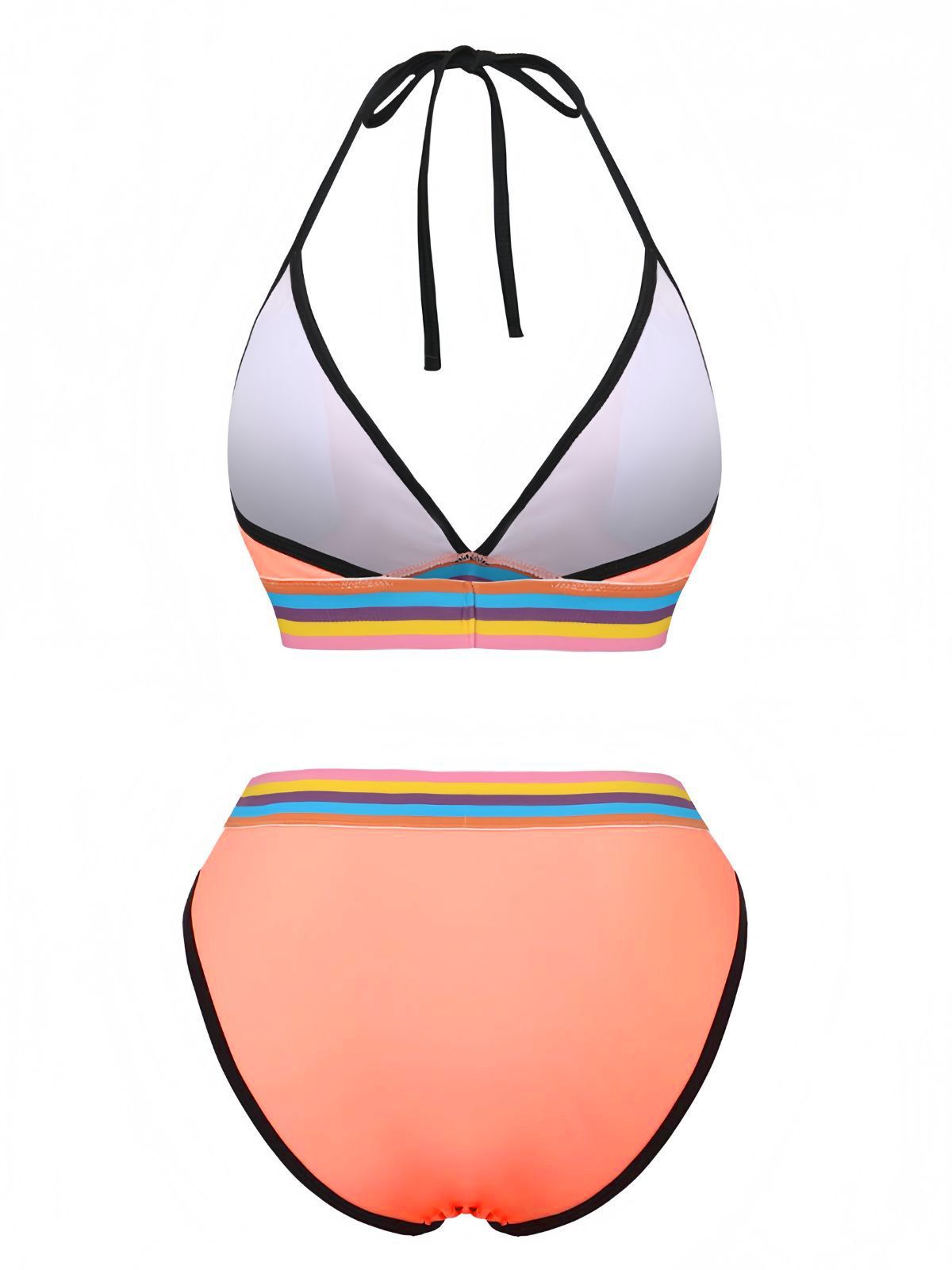 Pink 1940s Rainbow Striped Triangle Bikini Set