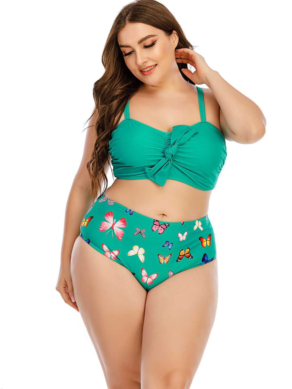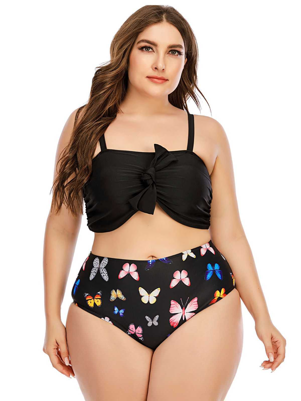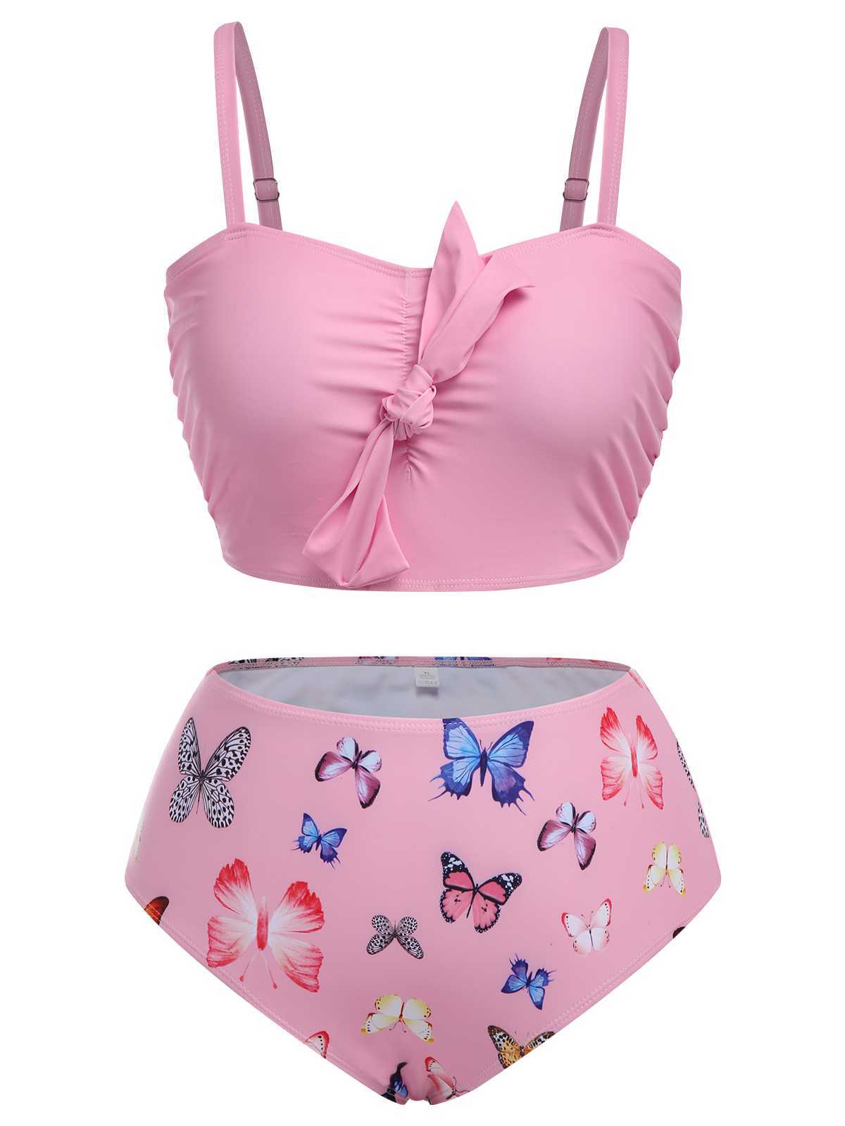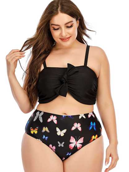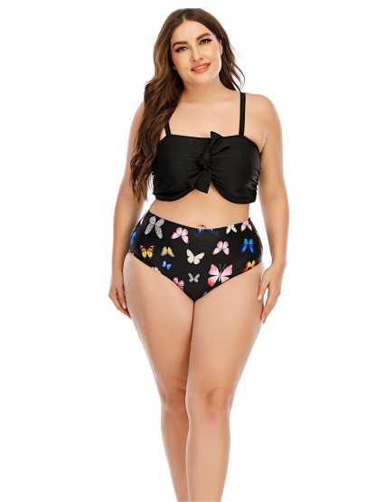 [Plus Size] 1960s Butterflies Bow Decor Swimsuit