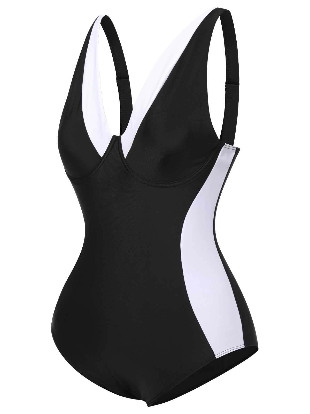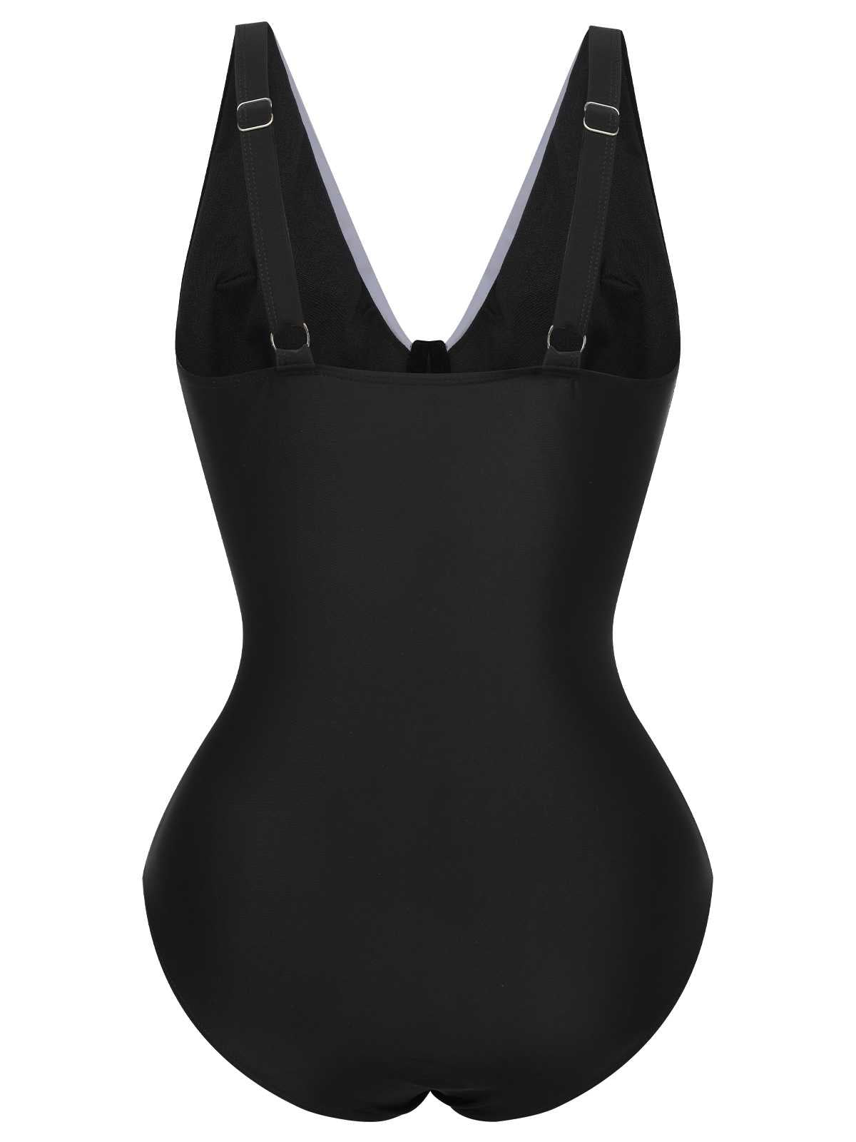 [Plus Size] Black 1930s Contrast One-Piece Swimsuit