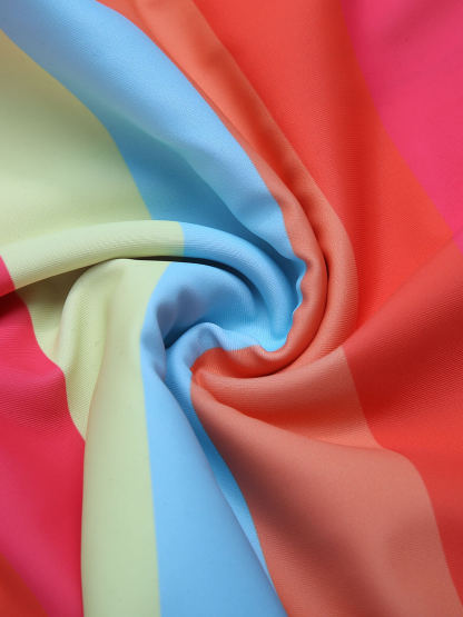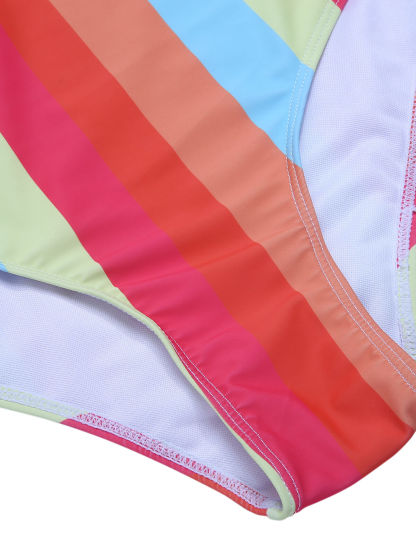 [Plus Size] Colorful 1950s Vertical Stripe Swimsuit