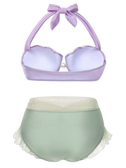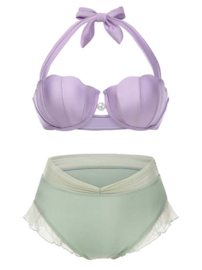 [Plus Size] Lavender 1970s Mermaid Shell Halter Bikini Set