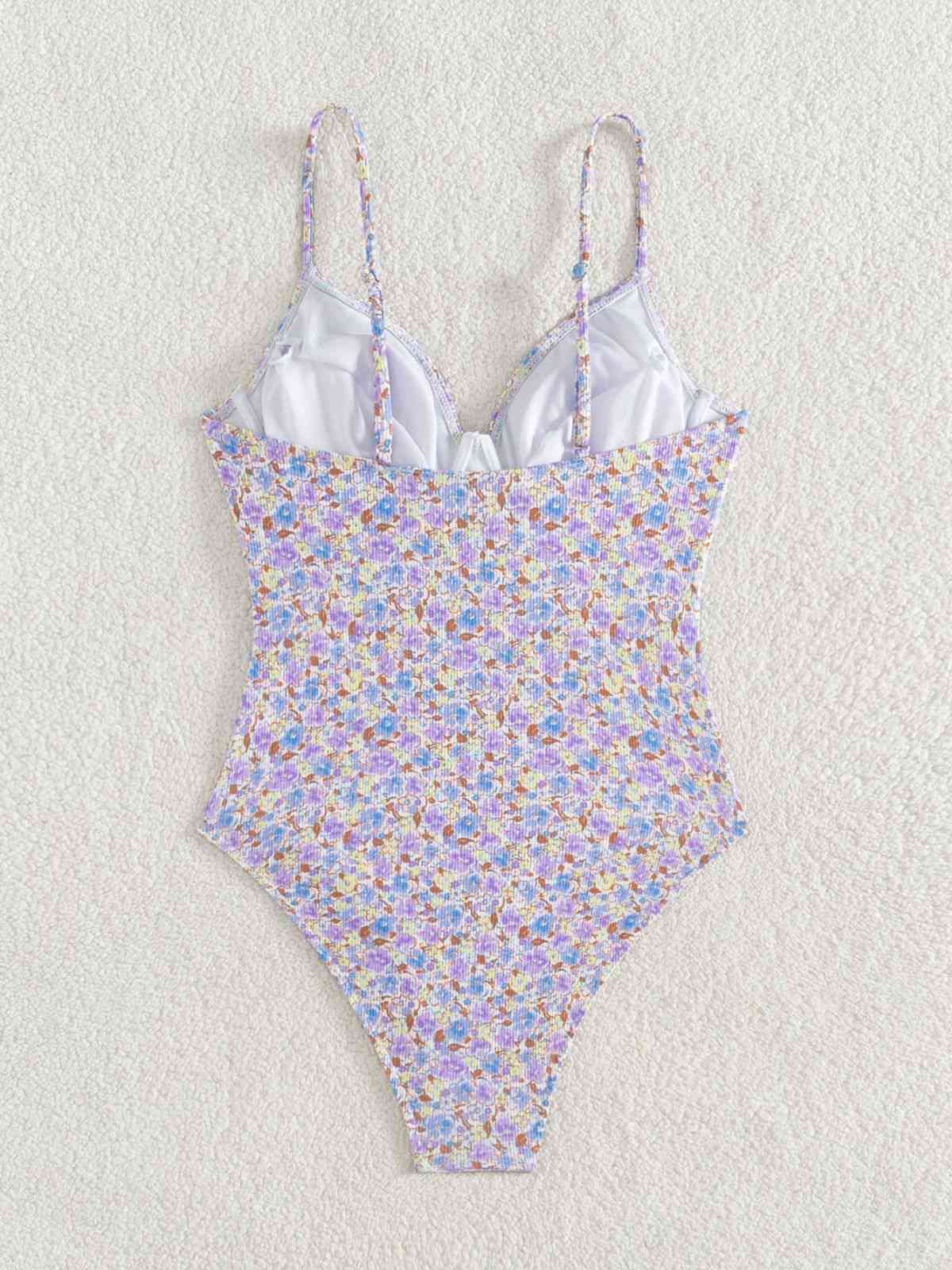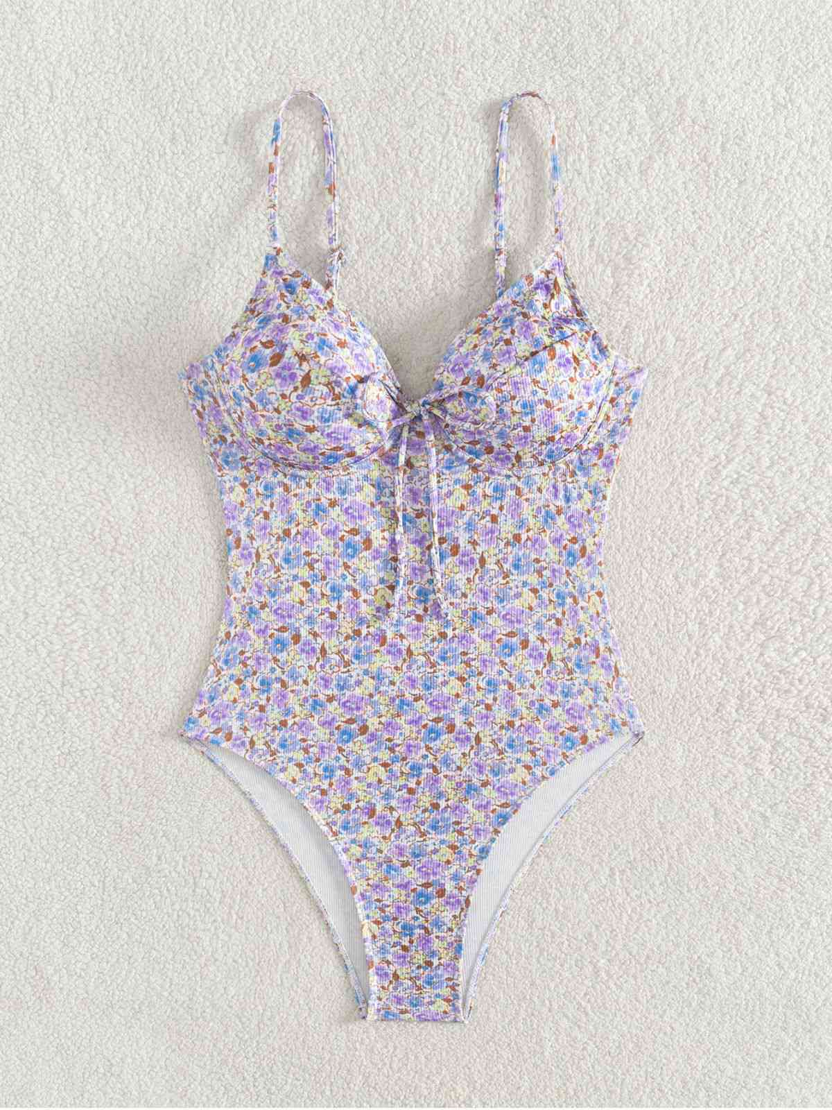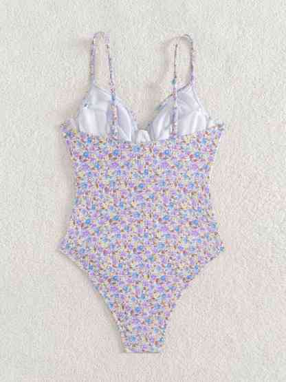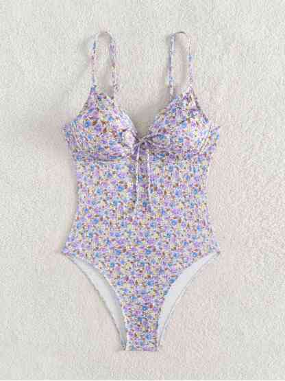 Purple 1950s Ditsy Floral Lace-Up One-Piece Swimsuit