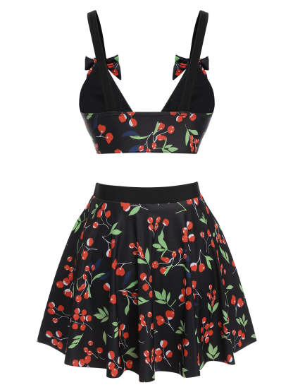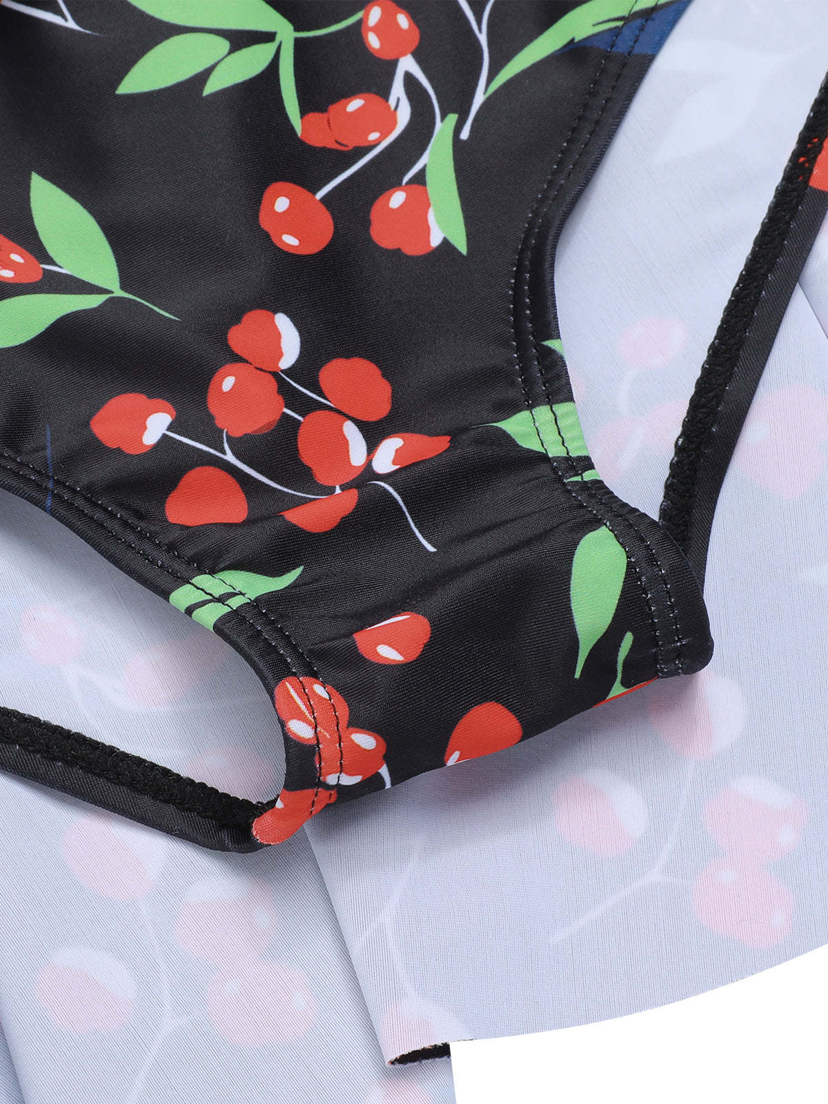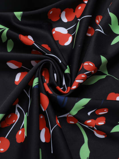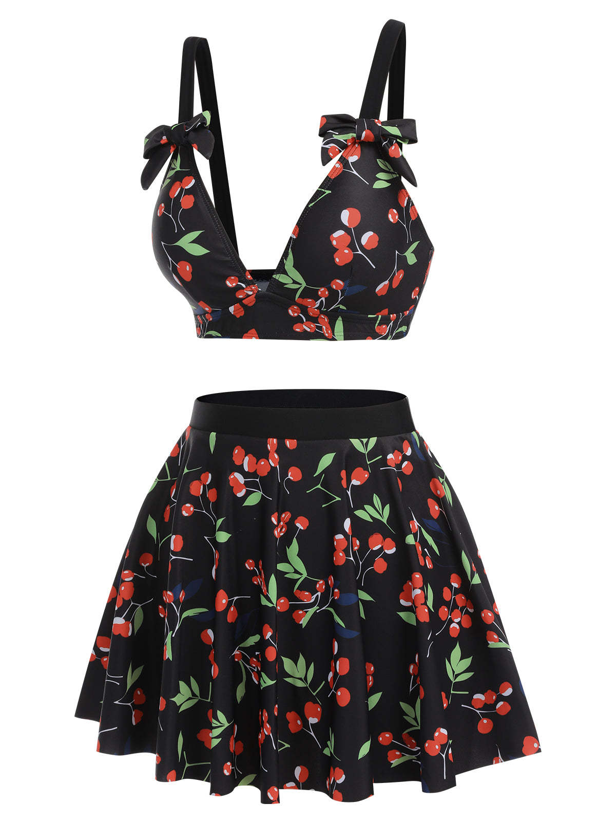 Step into timeless elegance with our Black 1950s Cherry Bow V-Neck Swimsuit. This stunning piece features a deep V-neck adorned with a charming cherry bow detail, evoking a sense of retro glamour. The high-stretch fabric ensures a comfortable and flattering fit. Removable chest pads provide customizable support, while the high-waisted design offers full coverage.