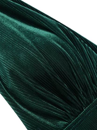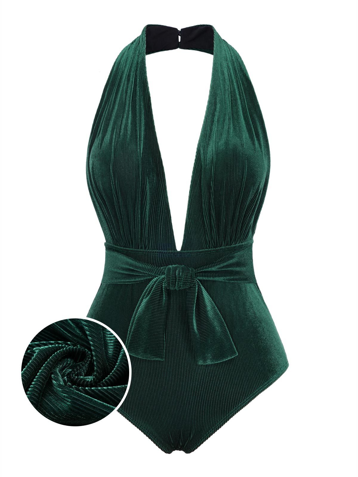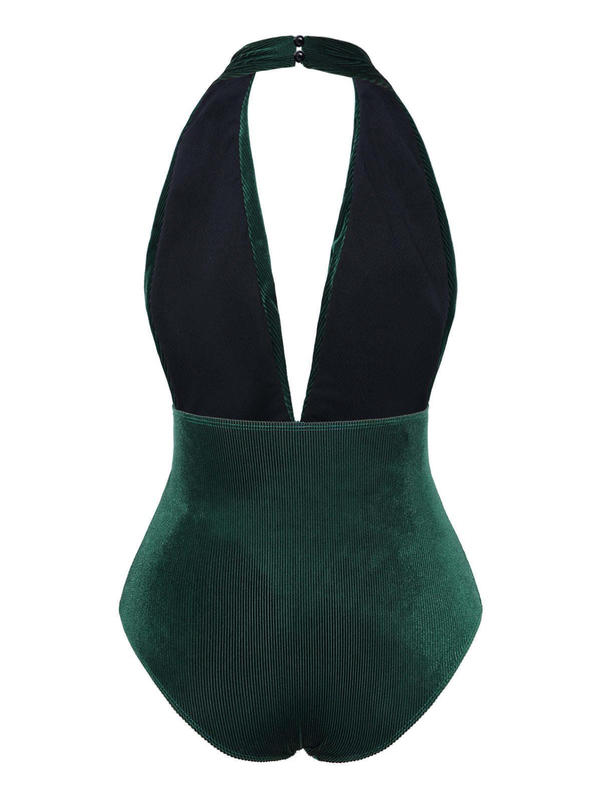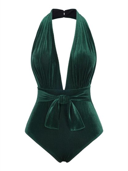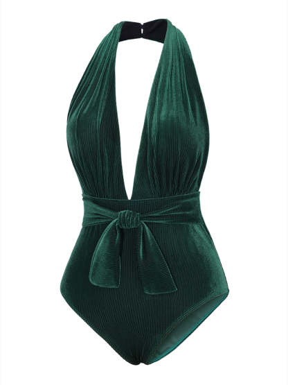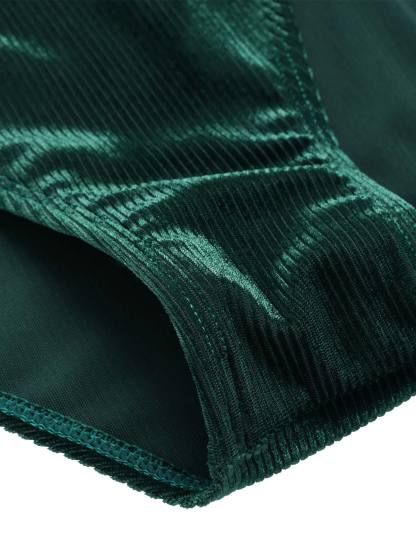 [US Warehouse] Dark Green 1970s Velvet Deep V-Neck Swimsuit